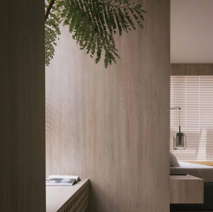 This project by L Architects features our Vanilla engineered hardwood flooring, used throughout a calming and thoughtfully composed residential interior. The light, creamy tones of the flooring form the foundation of the home’s serene atmosphere and pair effortlessly with the timber paneling, soft furnishings, and muted colour palette. In the bedroom, the gentle warmth of Vanilla works in tandem with filtered natural light to create a quiet, restful environment. Across the workspace and transitional corners, its consistent grain pattern helps maintain visual continuity, allowing each space to feel connected while remaining understated. The flooring supports the overall design intent of creating a minimal yet inviting home, where soft textures and natural materials take precedence.
